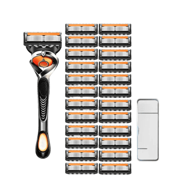 Fünf-Schicht-Präzisionsklingen: Die progressive Klingenanordnung ermöglicht eine Rasur, die fünf Zügen in einem entspricht, und sorgt so für eine gründliche und effiziente Rasur.